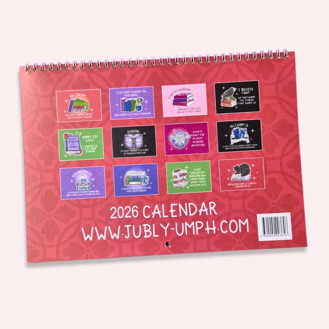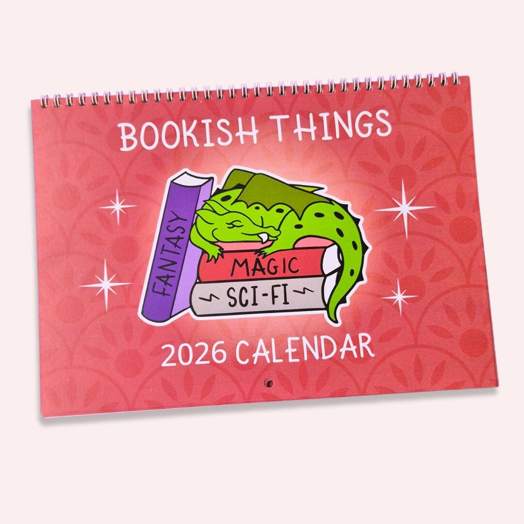 The Bookish Things 2026 Calendar is packed with colourful, nerdy, bookish designs, and it is ready to grace your wall.