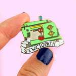 Endless hours hunched over a table with barely adequate light can take it's toll on a person! This lapel pin is for those whose craft has driven them to become the most reclusive and difficult type of crafter, one who prefers the company of a good overlocker to people: A true Sewciopath.