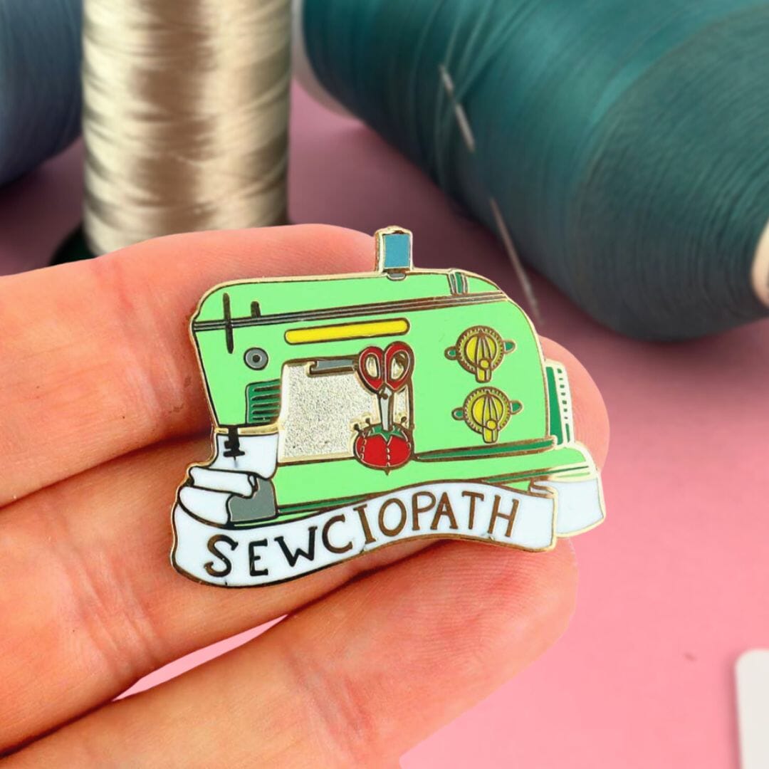 Endless hours hunched over a table with barely adequate light can take it's toll on a person! This lapel pin is for those whose craft has driven them to become the most reclusive and difficult type of crafter, one who prefers the company of a good overlocker to people: A true Sewciopath.